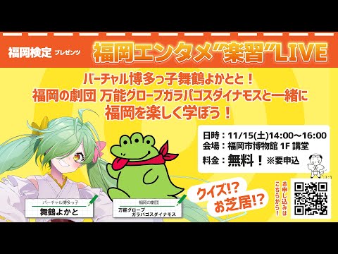 福岡市に関する検定『福岡検定』の勉強配信ばい!!! ▼団体受験チャレンジ中!お申し込みはこちらから! https://yokatojuken.netlify.app/ ▼福岡検定 https://fukuokakentei.com/ ▼過去の福岡検定勉強配信再生リスト https://www.youtube.com/playlist?list=PL...