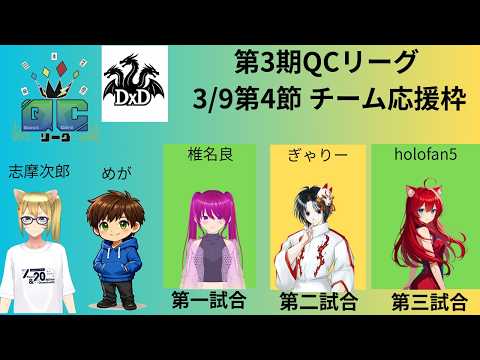 QCリーグ 3期3麻の特殊クエストカードを用いたリーグ戦になります。 チーム:DreamDrive(DxD)のメンバは リーダ:アルバマックス志摩次郎 メンバ:ぎゃりー めが 椎名良 holofan5 優勝して醤油もらいます