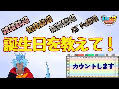 スイカゲーム、FF11もいいけど、バナンザもね! 本日、誕生日カウントしています。 日本形式でインプットしてください(月/日)にて 年号はいりません。 チャット欄のコメントから日付を検出して1回だけカウントします。 2回目のコメントは無視します。 ...