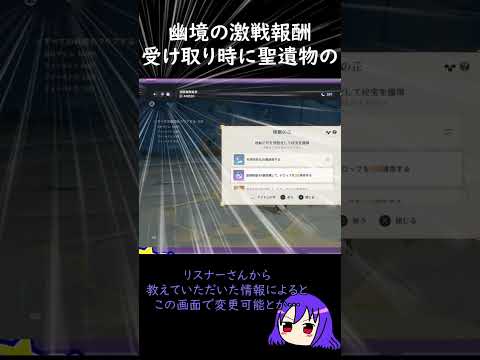 【原神/Genshin あるある】幽境の激戦の報酬受け取り画面で報酬聖遺物が変更できることに教えてもらうまで気が付かない【Vtuber 星影夕 切り抜き】 #shorts